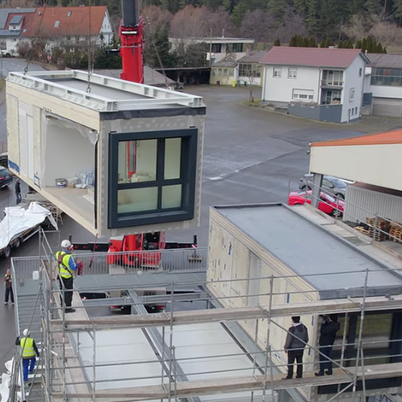 Emmendingen. Zwei neue Gebäude aus Wohnmodulen stehen jetzt am Sportfeld in Emmendingen. Bemerkenswert dabei: Die komplette Aufstellung beider Gebäude erfolgte in nur vier reinen Montagetagen – also zwei Tage pro Gebäude.