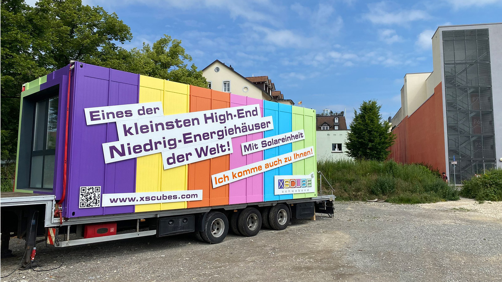 Mit unserem Show-Truck und einer mobilen XSCUBES-Wohneinheit touren wir durch Deutschland, um Ihnen vor Ort einen persönlichen Eindruck vom Wohnwert in unserer kleinsten Wohneinheit und dem aussergewöhnlichen Raumklima auf nur 19 qm zu geben. Nehmen Sie Kontakt mit uns auf, wenn wir mit unserem Truck auch zu Ihnen kommen sollen.