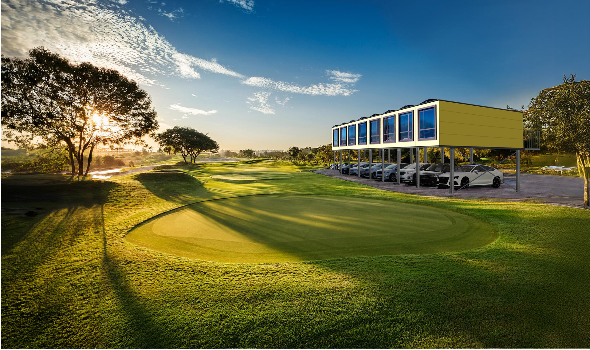 Auch Ihre Parkplätze lassen sich mit XSCUBES überbauen. Verwandeln Sie Ihre Golfanlage in ein exclusives Resort.